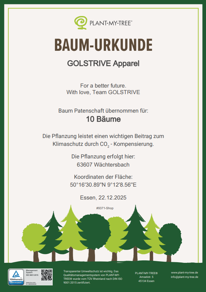 We are proud to have taken the first big step towards sustainability: our first 10 trees have been ordered and will be planted in Wächtersbach (Hesse). Over 250,000 trees have already been planted there – and we are now part of this movement. For us, this is more than just a project, it is a promise: fashion and responsibility go hand in hand.